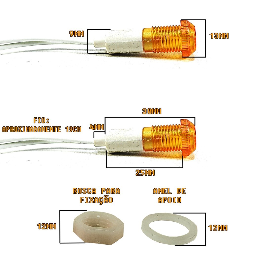 ANUNCIO REFERENTE A 4 LUZES DE GRADE - 12V *TODOS OS PRODUTOS SÃO TESTADOS ANTES DO ENVIO*. A mini luz de grade é composta por um corpo de plástico, uma lente em acrílico na cor laranjada que possui rosca, e uma porca em plástico, que prende o aro. A sua fixação, pode ser realizada com a rosca, ou com qualquer outro material que faça a luz ficar presa na grade de seu veiculo. Lembrando que esse produto é universal, então é possível adapta-lo em qualquer carro, utilizando a criatividade e materiais necessários. Para ascender as luzes, o mais simples a se fazer, é interliga-las entre si, ligar um fio ao positivo da meia luz, e o outro no negativo da meia luz. RECOMENDAMOS QUE A INSTALAÇÃO SEJA FEITA POR UM PROFISSIONAL. ESPECIFICAÇÕES: Cor da Concha: Branco (As imagens mostram) LightColor: Laranja/Âmbar (As fotos mostram) Temperatura de cor: 3000k PRODUTO 12V CONTEÚDO DA EMBALAGEM: 4 Unidade de Luz de Grade
