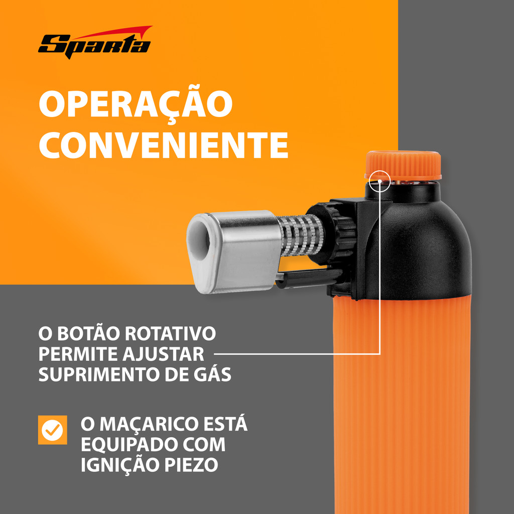 MINI MAÇARICO GÁS MT-4 PORTÁTIL AUTOMÁTICO – Queimador a Gás Sparta MT-4 9142555 – Versatilidade e Praticidade para Diversas Aplicações O MINI MAÇARICO GÁS MT-4 PORTÁTIL AUTOMÁTICO Sparta MT-4 9142555 é uma ferramenta versátil e eficiente, ideal para uma ampla gama de tarefas como acender fogo, aquecimento de peças, soldagem e trabalho com tubos termocontráteis. Seja em casa, na oficina, em caminhadas ou na casa de campo, este mini maçarico portátil é perfeito para quem precisa de uma ferramenta compacta e funcional, que oferece conveniência e desempenho superior. Vantagens: Ampla Gama de Soluções: Ideal para acender fogo, soldar peças e trabalhar com tubos termocontráteis, oferecendo uma solução prática para diversas necessidades. Fácil de Usar: O acendimento piezoelétrico permite que o mini maçarico gás MT-4 seja acionado em segundos, tornando-o rápido e prático. Controle de Intensidade de Calor: A alça giratória permite o controle preciso do fluxo de gás, proporcionando ajustes rápidos de intensidade de calor. Fácil de Encher: Utiliza um cilindro de gás comum para isqueiros, dispensando consumíveis especiais e tornando o reabastecimento simples e econômico. Durabilidade: O bocal cromado protege contra corrosão e desgaste, aumentando a vida útil do mini maçarico. Portátil e Automático: Seu design compacto e a função automática tornam o mini maçarico gás MT-4 ideal para trabalhos em movimento, em qualquer lugar, oferecendo máxima praticidade. O MINI MAÇARICO GÁS MT-4 PORTÁTIL AUTOMÁTICO Sparta MT-4 9142555 é a escolha perfeita para quem busca praticidade e conveniência em diversas tarefas de soldagem e aquecimento. Com a capacidade de ser alimentado por um cilindro de gás comum para isqueiros, ele oferece uma solução econômica, eficiente e portátil para suas necessidades.