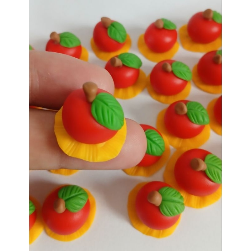 Mini Maçãs de Biscuit Apliques c/base kit c/10