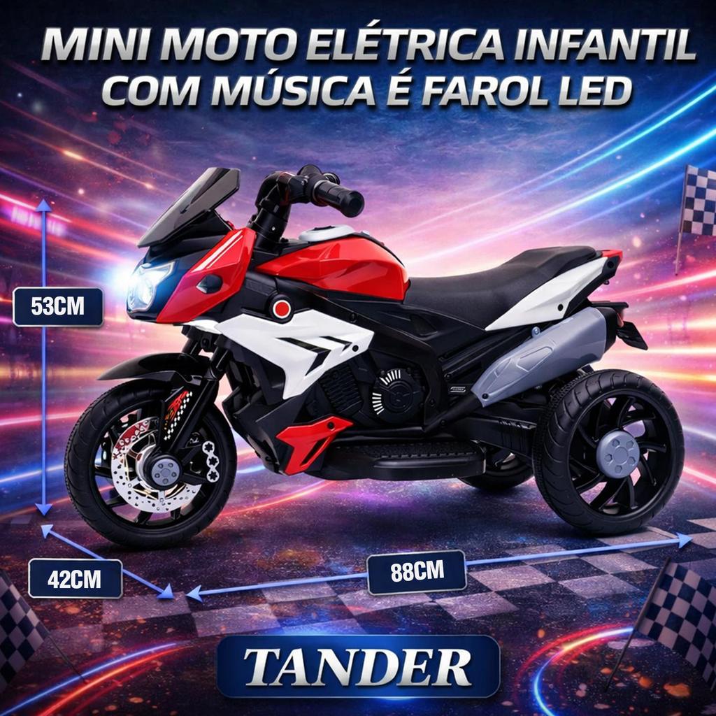 Mini Moto Elétrica Infantil TMV - Tander Segurança, diversão e estilo para acompanhar as primeiras aventuras do seu pequeno. A Mini Moto Elétrica Infantil TMV da Tander foi pensada para transformar a brincadeira em uma experiência divertida, encantadora e segura. Ideal para crianças de 3 a 5 anos, ela une visual moderno, farol LED funcional e sistema de som com música integrada para tornar cada passeio ainda mais especial. É um brinquedo perfeito para uso em locais seguros, como quintais, praças e parques, sempre com supervisão de um adulto. Além de entreter, ajuda a estimular a coordenação motora, o equilíbrio e a confiança da criança nas primeiras experiências com brinquedos motorizados. Aplicações e versatilidadeA Mini Moto Elétrica Infantil TMV é ideal para famílias que buscam um brinquedo seguro, bonito e marcante para presentear. Ela atende muito bem diferentes situações e perfis de uso: Presente para aniversário, Dia das Crianças, Natal e outras datas especiais Uso recreativo em quintais, áreas de lazer, praças e parques Brincadeiras supervisionadas em ambientes seguros Crianças que estão desenvolvendo coordenação e equilíbrio Pais que procuram diversão com mais tranquilidade e certificação de segurança Excelente opção para quem deseja unir entretenimento, estímulo motor e design atrativo em um só produto Benefícios do produtoCertificação do INMETRO Mais confiança para os pais, com conformidade aos padrões de segurança e qualidade exigidos para uso infantil. Farol LED funcional Deixa a brincadeira mais divertida e realista, além de valorizar o visual moderno da mini moto. Sistema de som com música integrada Torna o passeio ainda mais envolvente e estimulante para a criança. Fácil de pilotar Um modelo desenvolvido para proporcionar uma condução simples, ajudando no desenvolvimento da coordenação motora e do equilíbrio. Estrutura segura e confortável Pensada para oferecer mais estabilidade e conforto durante a brincadeira. Velocidade de 2 a 3 km/h Ritmo adequado para a proposta infantil, proporcionando diversão com controle e mais segurança. Bateria 6V 7AH Entrega energia compatível com a proposta do brinquedo, oferecendo uso recreativo após carga completa. Tempo de uso de 1 a 2 horas Após carregamento de 8 a 12 horas, proporciona um período interessante de diversão contínua. Carregador bivolt Entrada AC100-240V, trazendo mais praticidade no uso em diferentes ambientes domésticos. Capacidade máxima de 25 kg Desenvolvida para atender a faixa indicada de uso com mais segurança. Idade recomendada de 36 a 60 meses Produto pensado especialmente para crianças de 3 a 5 anos, respeitando o perfil de uso da categoria. Fusível resetável Um diferencial funcional que contribui para a praticidade e proteção do sistema. Material principal em PP Estrutura adequada para a proposta do brinquedo, com foco em uso infantil. Dimensões do produto: 88 x 42 x 53 cm Tamanho ideal para a faixa etária indicada, oferecendo presença visual sem perder praticidade. Soluções oferecidas pelo produto“Quero presentear com algo realmente marcante” A Mini Moto Elétrica Infantil TMV entrega um visual moderno, farol LED e música integrada, tornando o presente muito mais especial e memorável. “Tenho receio de comprar um brinquedo sem segurança comprovada” O produto conta com certificação do INMETRO, trazendo mais tranquilidade aos pais e responsáveis. “Meu filho enjoa rápido de brinquedos comuns” Com som, farol e movimento elétrico, a brincadeira se torna mais interativa e envolvente. “Preciso de um brinquedo fácil de usar” O modelo foi desenvolvido para ser fácil de pilotar, favorecendo a adaptação da criança. “Quero algo que una diversão e desenvolvimento” Além do entretenimento, a mini moto incentiva coordenação motora, equilíbrio e percepção espacial. “Busco uma opção adequada para áreas externas seguras” É ideal para quintais, parques e praças, ampliando as possibilidades de uso em momentos de lazer. Por que adquirir este produto?A Mini Moto Elétrica Infantil TMV da Tander é uma excelente escolha para quem quer ir além do brinquedo comum. Ela combina diversão, apelo visual, recursos que encantam as crianças e características que trazem mais confiança para os pais. Seu grande diferencial está no equilíbrio entre entretenimento e segurança, com certificação do INMETRO, velocidade compatível com a proposta infantil, estrutura voltada ao conforto e elementos como farol LED e música integrada, que tornam a experiência muito mais completa. A marca Tander também agrega valor ao produto ao oferecer um modelo pensado para o público infantil com foco em praticidade, diversão e uso real em ambientes seguros. Para quem busca um presente atrativo, funcional e com ótimo potencial de encantar a criança, esta mini moto é uma escolha certeira. Leve mais emoção para a infância com uma mini moto que une diversão, estilo e segurança em cada passeio.