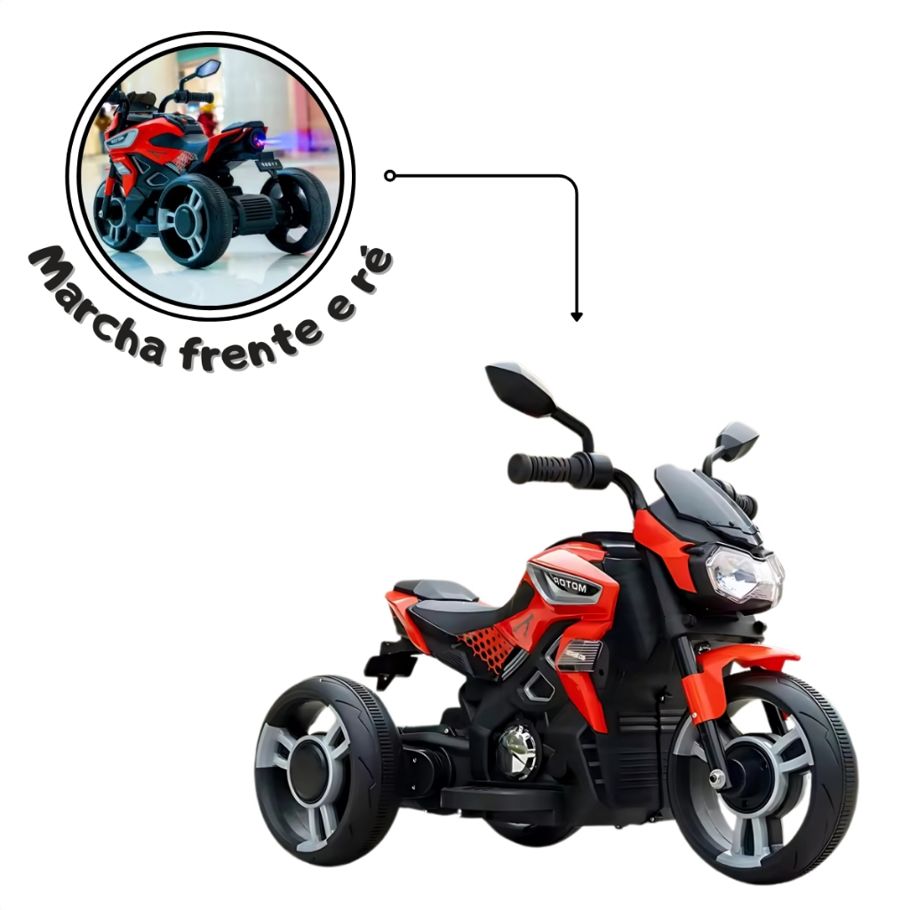 Mini Moto Elétrica Triciclo de Passeio Infantil 6V com Luzes e Pedal Elétrico