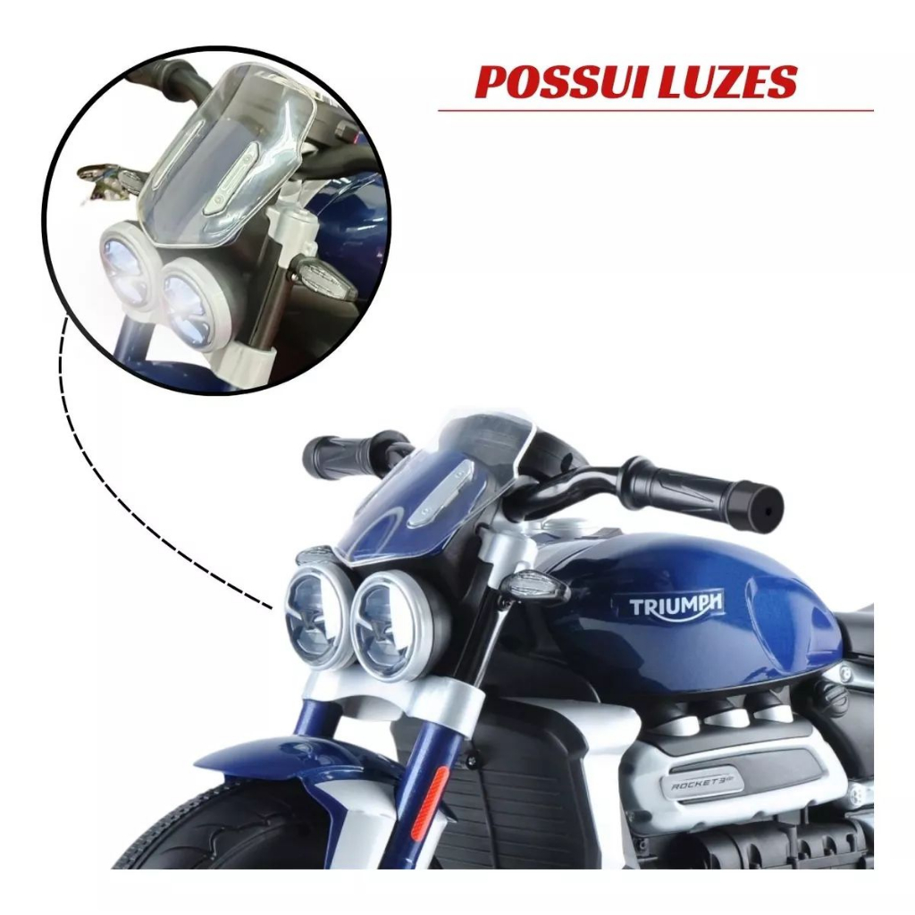 | Mini Moto Elétrica Triumph Rocket 3GT, Infantil, Azul este produto | R$ 1.031,19 | 10% | 5.0/5 | — |
