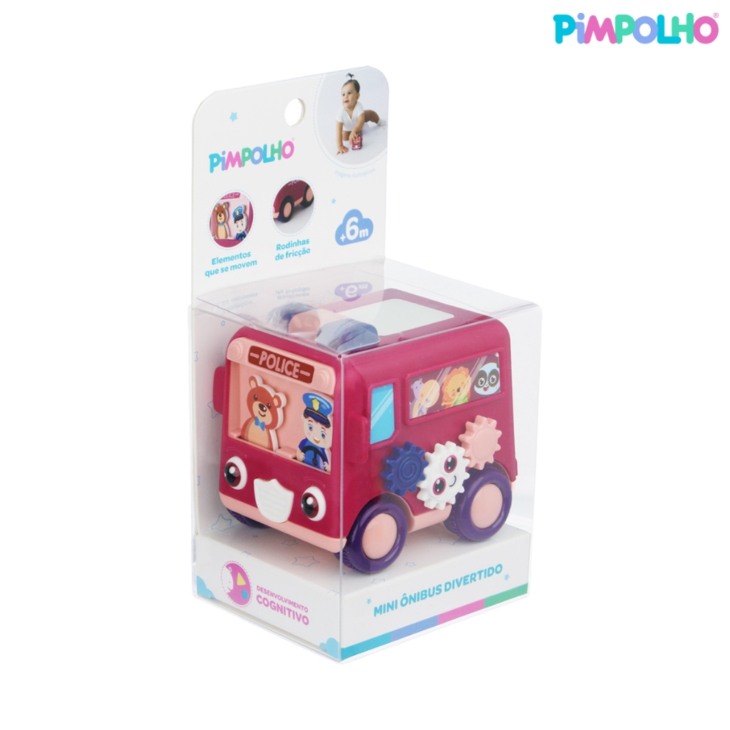 Mini Ônibus Divertido Pimpolho Características: O mini ônibus divertido da Pimpolho possui sistema de fricção e os personagens na parte frontal se movimentam de um lado para o outro durante a rolagem das rodinhas. Desenvolve habilidades dos sentidos como a visão, através do apecto colorido oferecendo estimulo visual, e o tato. Incentiva a observação, a identificação e capacidade cognitiva, além de desenvolver sua imaginação, coordenação motora grossa e a coordenação olho-mão. Auxilia no crescimento do criança, beneficiando seu desenvolvimento. CONTÉM 1 UNIDADE. Conservação: Lavagem à mão, temperatura máxima de 40°C; Não alvejar; Não secar em tambor; Secagem na horizontal à sombra; Não passar; Não limpar a seco; Não limpar a úmido. Advertências: ATENÇÃO! Mantenha longe do fogo. Esta embalagem contém fechos/grampos. Retirar antes de entregar o brinquedo à criança. Produto atóxico. Não expor à luz do sol para evitar o envelhecimento precoce do produto. Este brinquedo não foi projetado para ser mordido pelo bebê. Validade indeterminada. Modo de Uso: O carrinho se movimenta através de fricção, ao se mover os personagens na parte frontal do brinquedo balançam de um lado para o outro e as engranagens na lateral se mexem, levando o brinquedo a longas distâncias. Faixa Etária: 06 Meses+