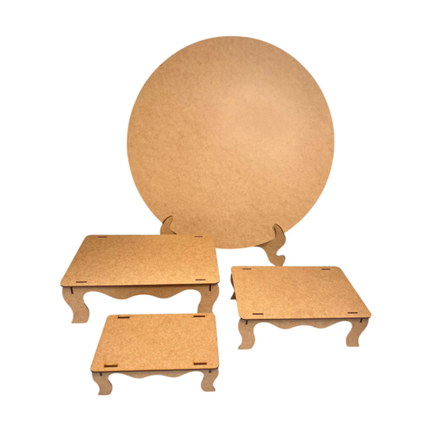 Mini Painel de Festa 50cm MDF Cru com Suporte Kit Pegue e Monte com Trio de Bandejas