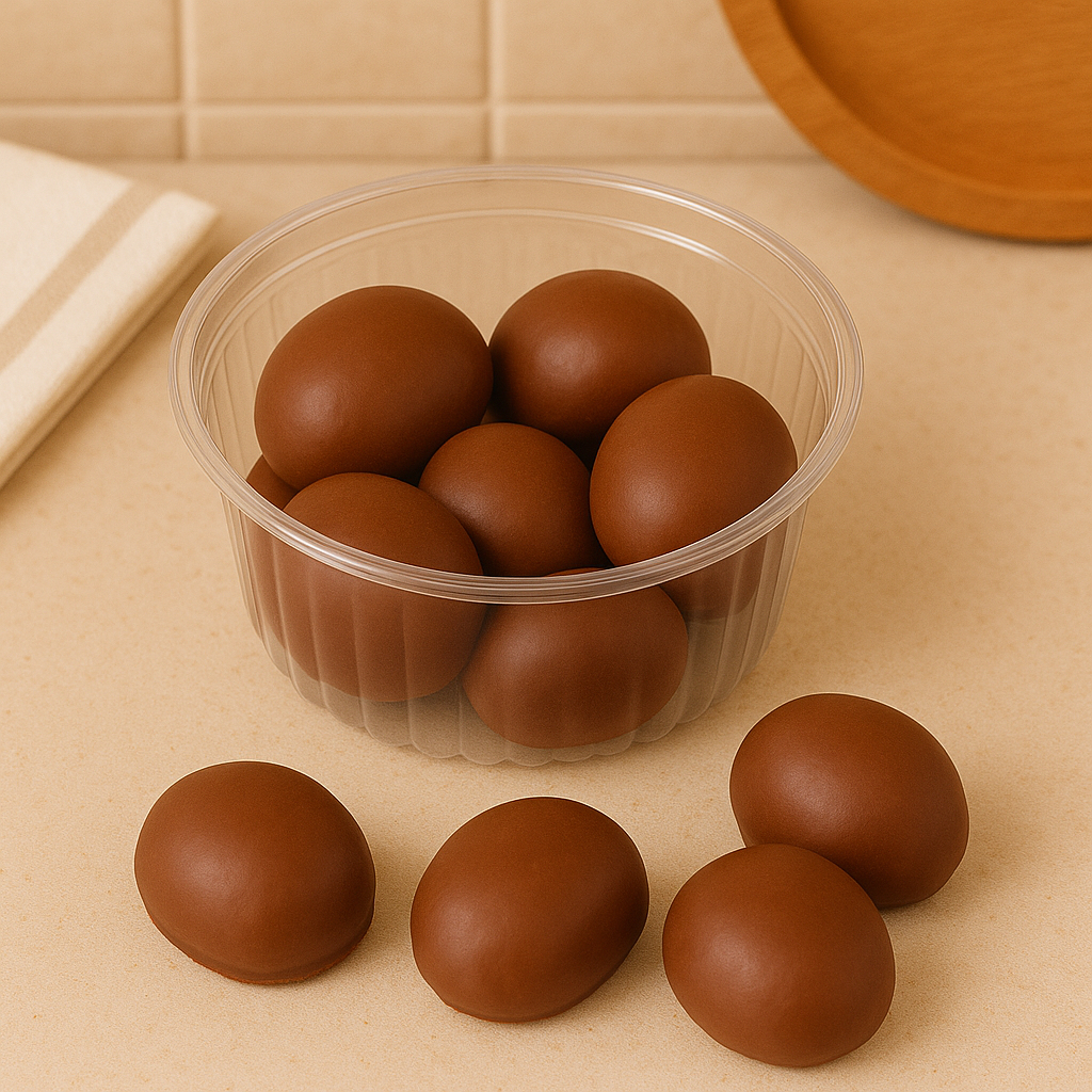 Mini Pão de Mel Pote 150g C/15un – Siareg | Sabor caseiro em cada mordida! Deliciosos mini pães de mel da Siareg, macios, recheados e cobertos com chocolate, perfeitos para festas, lembrancinhas ou um mimo no dia a dia. Feitos com massa leve e sabor marcante de mel, cada unidade é cuidadosamente banhada em chocolate, garantindo uma explosão de sabor a cada mordida. Práticos e prontos para servir, são ideais para compor mesas de doces, presentear ou oferecer como mimo em eventos. Características do produto: Contém: 15 unidades por pote Peso total: 150g Tamanho unitário: aprox. 10g cada Cobertura: Chocolate ao leite Massa: Pão de mel tradicional com toque artesanal Embalagem: Pote plástico com tampa, seguro e higiênico Indicação de uso: Perfeito para lembrancinhas de aniversário, brindes corporativos, doces para festa, festas infantis, ou até mesmo para revenda. Produto com ótima apresentação e sabor que agrada todos os paladares. Benefícios: Pronto para consumo Tamanho ideal para porções individuais Excelente custo-benefício para eventos e festas Produto com sabor caseiro, qualidade garantida Siareg Conservação: Armazenar em local fresco e seco. Após aberto, manter bem fechado e consumir em até 7 dias. Atenção alérgicos: Contém glúten, leite, ovos e derivados. Pode conter traços de soja e oleaginosas.