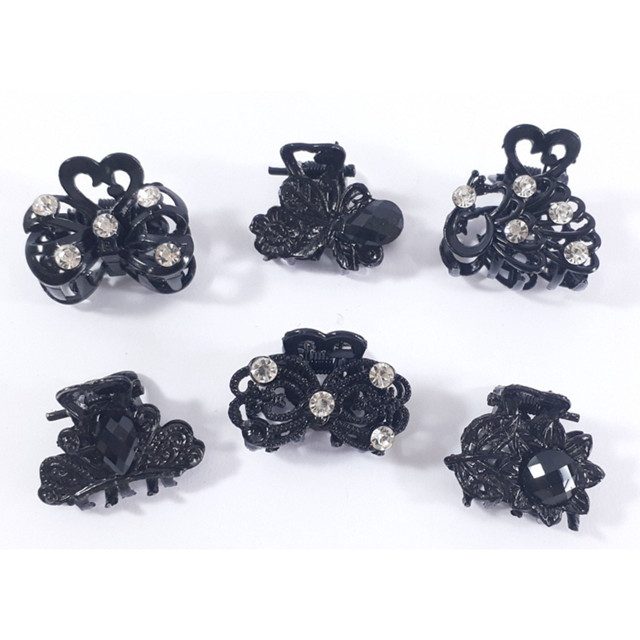 Mini Piranha De Cabelo/metal Com Strass preto/ prata/dourado