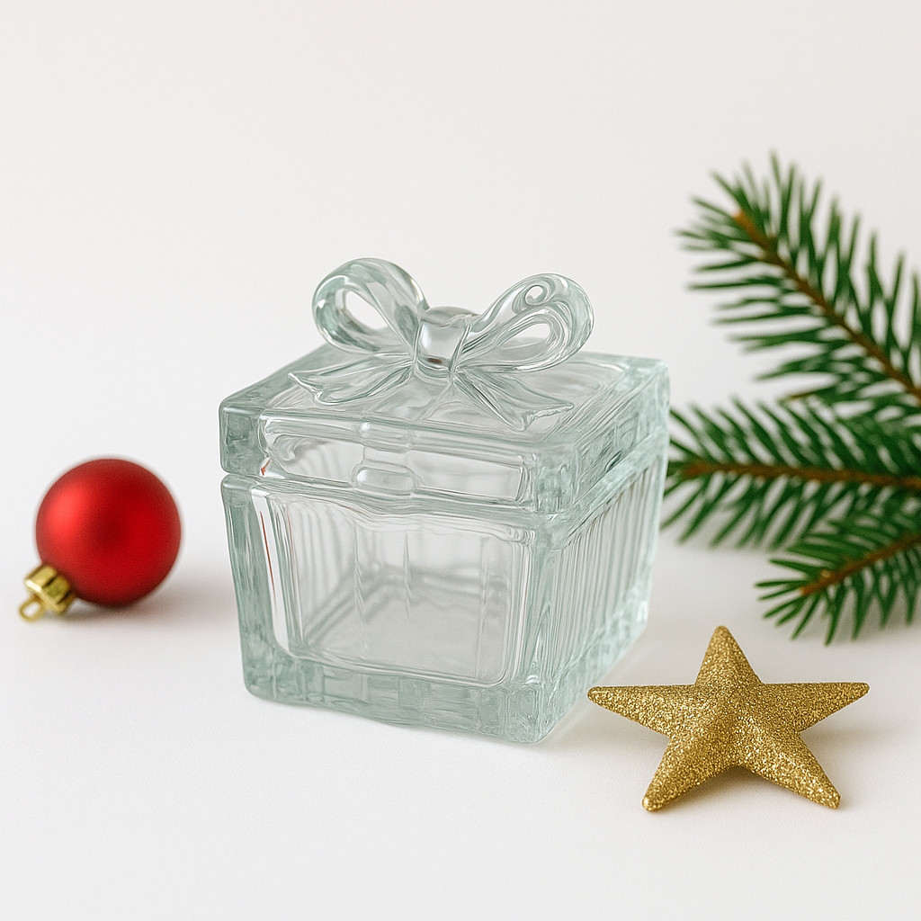 Mini Pote Caixa Vidro Laço Presente Cookie Bombom Biscoito