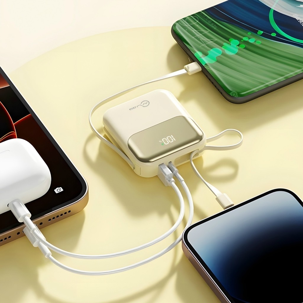 🔋 MINI POWER BANK 10000mAh – ULTRA COMPACTO E PRÁTICO O Mini Power Bank 10000mAh é a solução perfeita para quem precisa de energia no dia a dia sem carregar peso. Com design compacto, cabe facilmente no bolso, bolsa ou até na mão. 📏 TAMANHO MINI – SUPER PORTÁTIL ✔ Design pequeno e leve ✔ Ideal para levar no bolso ✔ Perfeito para viagens, trabalho e uso diário ✔ Não ocupa espaço 🔌 CABOS INTEGRADOS – MAIS PRATICIDADE ✔ Conector Tipo-C integrado ✔ Conector Lightning (iPhone) integrado ✔ Saída USB adicional ✔ Dispensa carregar vários cabos ⚡ CARREGAMENTO DE ATÉ 3 DISPOSITIVOS ✔ Carregue mais de um aparelho ao mesmo tempo ✔ Ideal para celular, fones e acessórios ✔ Praticidade total no dia a dia 🔢 DISPLAY DIGITAL INTELIGENTE ✔ Mostra a porcentagem da bateria ✔ Controle fácil do nível de carga ✔ Visual moderno e funcional 🛡️ SEGURANÇA NO USO ✔ Proteção contra sobrecarga ✔ Proteção contra curto-circuito ✔ Sistema inteligente de energia 📱 COMPATIBILIDADE UNIVERSAL ✔ Funciona com Android e iPhone ✔ Compatível com diversos dispositivos USB 📦 CONTEÚDO DA EMBALAGEM ✔ 1x Mini Power Bank 10000mAh ✔ 1x Cabo USB ✔ 1x Embalagem do produto 🎨 CORES DISPONÍVEIS ✔ Preto ✔ Dourado ✔ Roxo (Enviar conforme disponibilidade ou escolha) ⭐ DIFERENCIAIS ✅ Tamanho mini (cabe no bolso) ✅ Cabos integrados ✅ Display digital ✅ Leve e fácil de transportar ✅ Ideal para uso diário ⚠️ INFORMAÇÕES IMPORTANTES Produto compacto (modelo mini) Pode haver variação de cor conforme o lote Tempo de carga pode variar conforme o aparelho