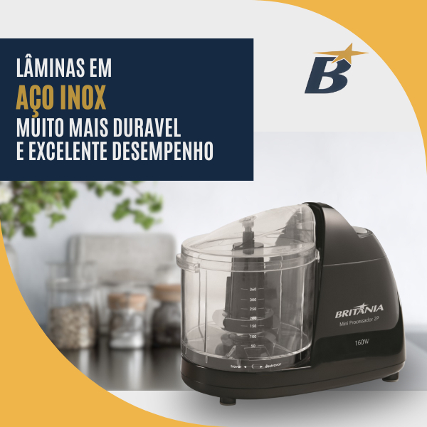 | Mini Processador Alimentos Britânia 2P Triturador Alho Cebola Tempe... este produto | R$ 149,90 | 28% | 4.8/5 | — |