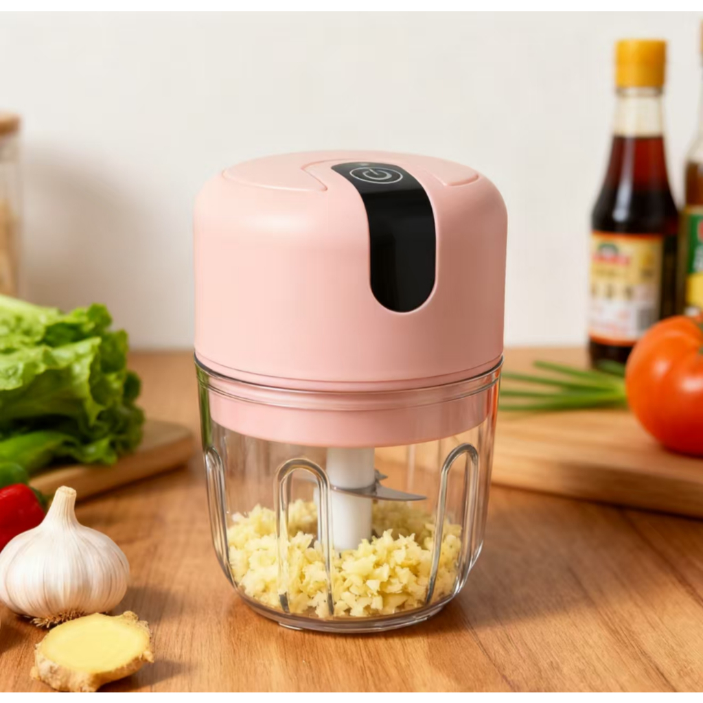 Mini Processador Elétrico de Alimentos Portátil com 3 lâminas de aço inox USB 250 ml