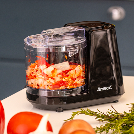 MINI PROCESSADOR ELÉTRICO E TRITURADOR DE ALIMENTOS AMVOX 7898649371727 1000W 2 LÂMINAS PRETO