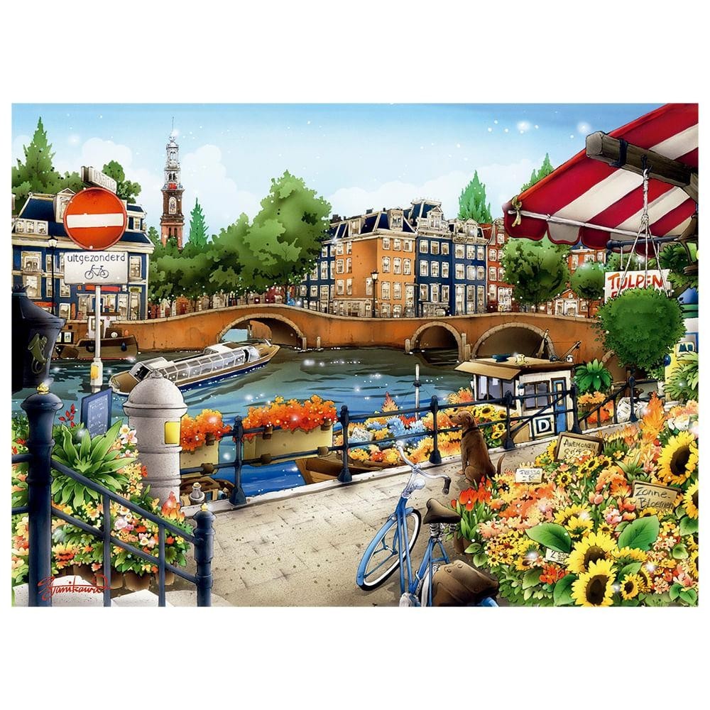 Uma imagem que revela a magia de Amsterdã, com seus canais sinuosos, flores vibrantes e construções coloridas, transformando cada peça em um portal para a encantadora atmosfera da cidade! Tamanho do puzzle 30,0 x 22,0 cm Quantidade de peças 500 A partir de 10 anos