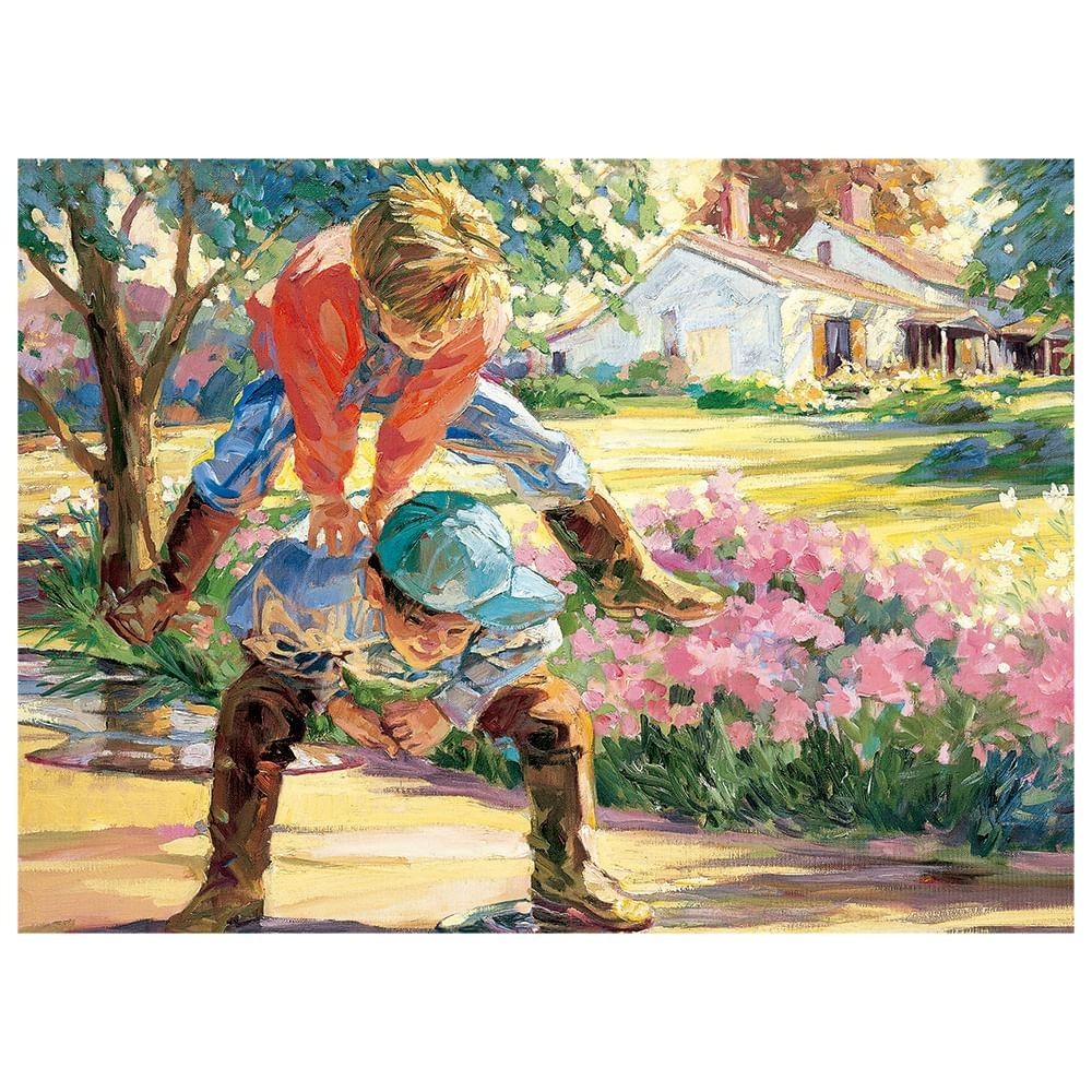 Sinta a alegria de duas crianças brincando em meio à natureza, com uma pequena casinha ao fundo, transmitindo a mágica da infância! Tamanho do puzzle 30,0 x 22,0 cm Quantidade de peças 500 A partir de 10 anos