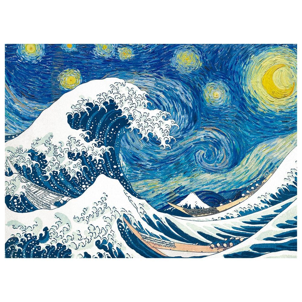 Uma fusão criativa das obras de dois clássicos da arte: a força das ondas de Hokusai encontra a beleza do céu de Van Gogh. Monte essa união exclusiva entre Oriente e Ocidente peça por peça! Tamanho do puzzle 30,0 x 22,0 cm Quantidade de peças 500 A partir de 10 anos