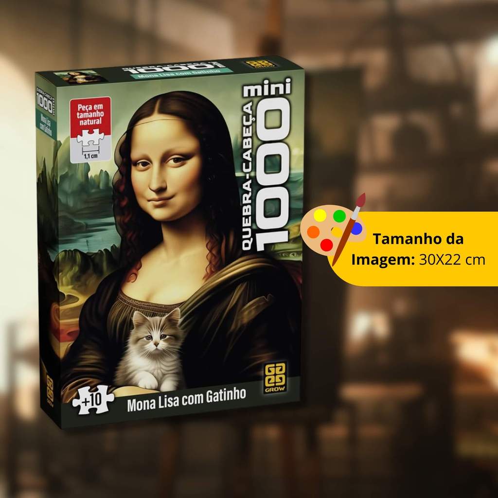 Mini Quebra-Cabeça Puzzle 1000 peças Mona Lisa com Gatinho +10 Anos Grow - 04927