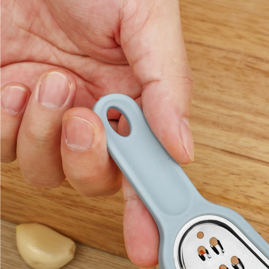 Mini Ralador Manual de Aço Inox para Alho e Temperos + Coletor, Suporte de Plástico e Compartimento Auxiliar para Armaze