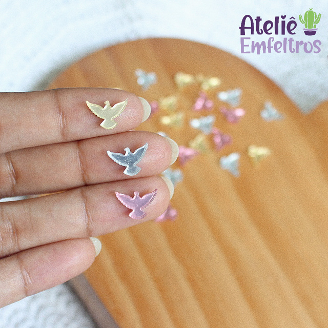 | Mini recortes apliques em acrílico espelhado - Pomba Espirito Santo... este produto | R$ 10,90 | — | 4.9/5 | 14 |
