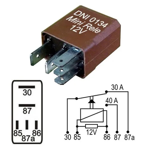 Míni Relé Auxiliar - 12v - 40/30a Dni 0134