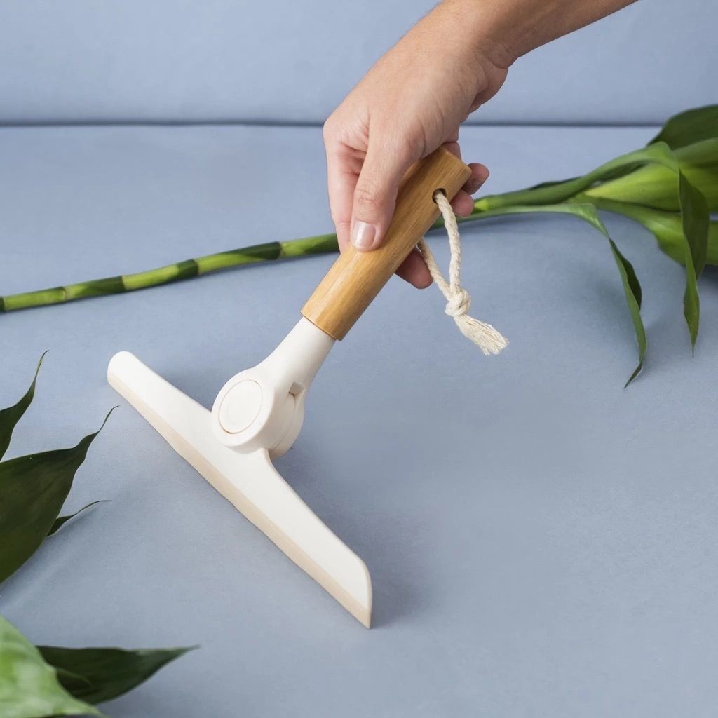 Mini Rodo De Pia Dobrável Com Cabo De Bambu Multiuso