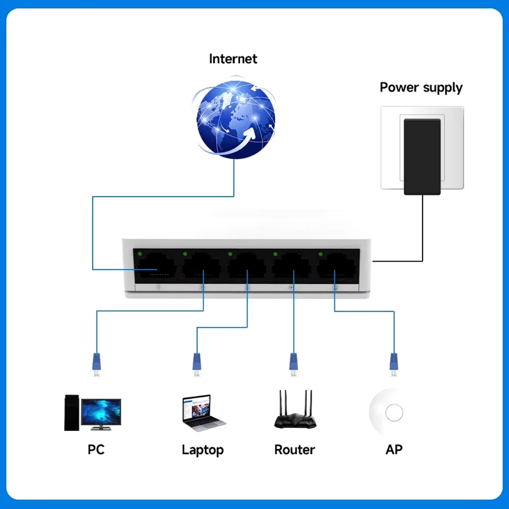 Mini Roteador Switch de Rede 5 Portas Gigabit 10/100mbps LAN RJ-45 Alta Velocidade Sem Configuração