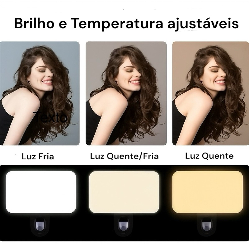 Mini Luz de LED Recarregável — Perfeita para Fotos e Vídeos! Obtenha a iluminação ideal em qualquer lugar! Compacta, leve e potente, essa Mini Luz de LED é perfeita para vídeos, fotos, maquiagens, transmissões ao vivo e videoconferências. ✨ Destaques do Produto: 1. 3 modos de iluminação ajustáveis — escolha entre luz branca, luz quente e luz branca quente para cada ocasião. 2. Brilho regulável — controle facilmente a intensidade da luz conforme sua necessidade. 3. Bateria recarregável (250mAh) — praticidade e portabilidade sem precisar de fios. 4. Fácil de instalar e remover — compatível com celulares, notebooks e câmeras. 5. Uso versátil — ideal para selfies, chamadas de vídeo, gravações, produção de conteúdo e muito mais. ⚙️ Especificações Técnicas: • Tensão da bateria: 3.7V • Potência: 3.7W • Modos de luz: Branca / Quente / Branca Quente • Capacidade da bateria: 250mAh • Temperatura de cor: 3200K – 4500K • LEDs: 24 lâmpadas de alta eficiência