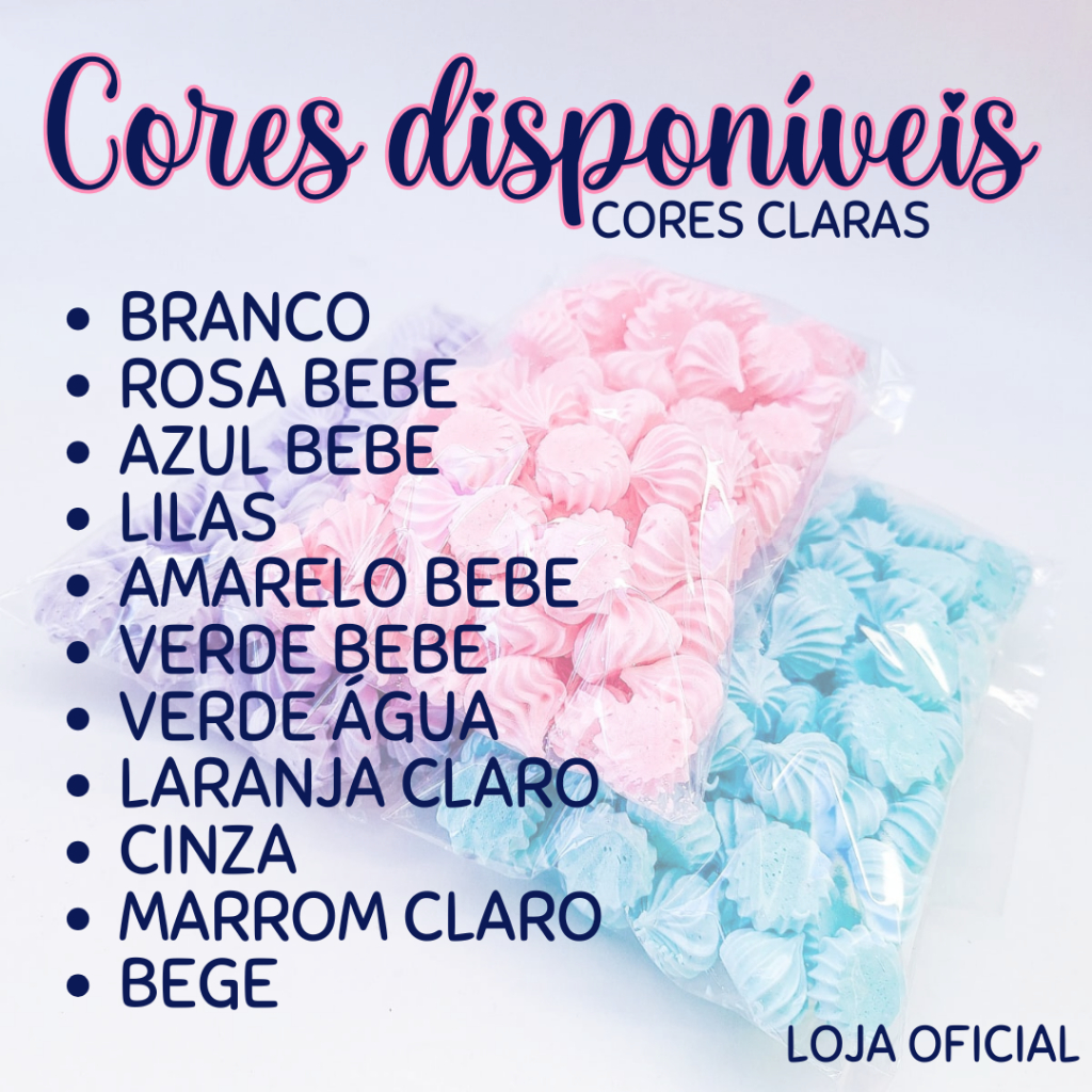 Bem vindo(a) a Los Suspireiros a sua Doceria 100% artesanal..!! Suspiros Gourmet Coloridos Kit com 1000 Unidades de Mini Suspiro Lembrancinhas Festas Os mini suspiros estão cada vez mais presentes em diversos tipos de eventos, desde a lembrancinhas de nascimento á casamento e nós estamos aqui para te proporcionar a melhor experiência. DESCRIÇÃO - Validade 90 Dias a Contar a data de Fabricação ⚠️⚠️(Sempre Produzimos no Dia do Envio)⚠️⚠️ - Indicados para a montagem de lembrancinhas - 10 Pacotes com 100 unidades de Mini Suspiros (Cento) - Até dez cores diferentes, (1 cor por pacote) ⚠️somente cores claras⚠️ - Mini Suspiros com tamanho aproximado de 3cm cada - Após realizar a compra, favor entrar em contato via chat para informar as cores desejadas. CORES DISPONIVEIS(TONS CLAROS) - BRANCO - BEGE - AZUL BEBE - AMARELO BEBE - CINZA - VERDE BEBE - TURQUESA - ROSA BEBE - LARANJA CLARO - MARROM CLARO - LILÁS ⚠️⚠️ CASO NÃO HOUVER CONFIRMÇÃO DAS CORES EM ATÉ 2 HORAS APÓS O PEDIDO SERÁ ENVIADO NA COR BRANCO ⚠️⚠️ ARMAZENAMENTO - Manter em embalagem fechada ou em potes de vidro ou herméticos para maior conservação - Suspiros são inimigos da umidade *NÃO PODEM IR A GELADEIRA! - Mantê-los em local fresco, arejado, longe do contato com o sol ou umidade. NÓS, DA LOS SUSPIREIROS, AGRADECEMOS IMENSAMENTE A SUA VISITA, ESPERAMOS TER SIDO CLAROS E OBJETIVOS EM TODAS AS INFORMAÇÕES A CIMA! CASO TENHA RESTADO QUALQUER TIPO DE DÚVIDA, NÃO HESITE EM MANDAR UMA PERGUNTA, ESTAMOS A SUA INTEIRA DISPOSIÇÃO. CONTE SEMPRE COM A GENTE!