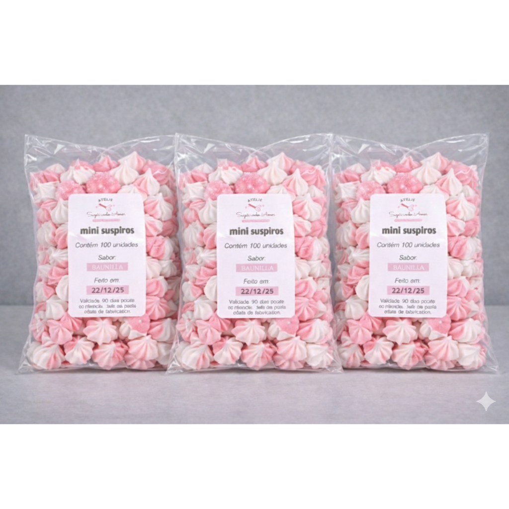 💖 Bem-vindo(a) ao Ateliê Suspirando Amor! 💖 Sua Doçeria 100% Artesanal especializada em adoçar o seu grande dia. Perfeito para lembrancinhas e decoração de festas. Os mini suspiros dão todo um toque especial que não pode faltar em seus eventos, desde chás de bebê e batizados até casamentos! Eles são perfeitos para qualquer ocasião e estamos aqui para garantir que sua experiência seja a mais doce e incrível possível. Cores Disponíveis (em Tons Claros) - BRANCO - BEGE - AZUL - AMARELO - TURQUESA - VERDE MENTA - VERDE FOLHA - ROSA - LARANJA - MARROM - LILÁS - SALMÃO - VERDE OLIVA ⚠️ Importante: CASO NÃO TENHA A COR QUE DESEJA NOS CHAME NO CHAT. ✨ Detalhes do Produto - Sabor: BAUNILHA - Combinação de até 3 cores por pacote. - Validade: 90 dias a partir da data de fabricação. (A produção é sempre feita no dia do envio para garantir a melhor qualidade) - Guardar: Mantenha-os em potes herméticos ou de vidro bem fechados, ou na embalagem original, para protegê-los da umidade. - Atenção: Suspiros não se dão bem com umidade! NÃO DEVEM SER COLOCADOS NA GELADEIRA. - Local: Armazene em um lugar fresco, seco e arejado, longe da luz solar direta. - Tamanho: Entre 2,5 a 3cm cada Mini Suspiro. - Contem 1 pacote de mini suspiros, com 100 unidades no pacote. OBS: As cores podem sofrer alterações devido a tela do seu monitor ou celular. Agradecemos sua visita e interesse. Nossa missão é adoçar seus momentos especiais, e esperamos ter tirado todas as suas dúvidas! Se ainda restar alguma pergunta, é só nos chamar. Estamos sempre à disposição. Um grande abraço!