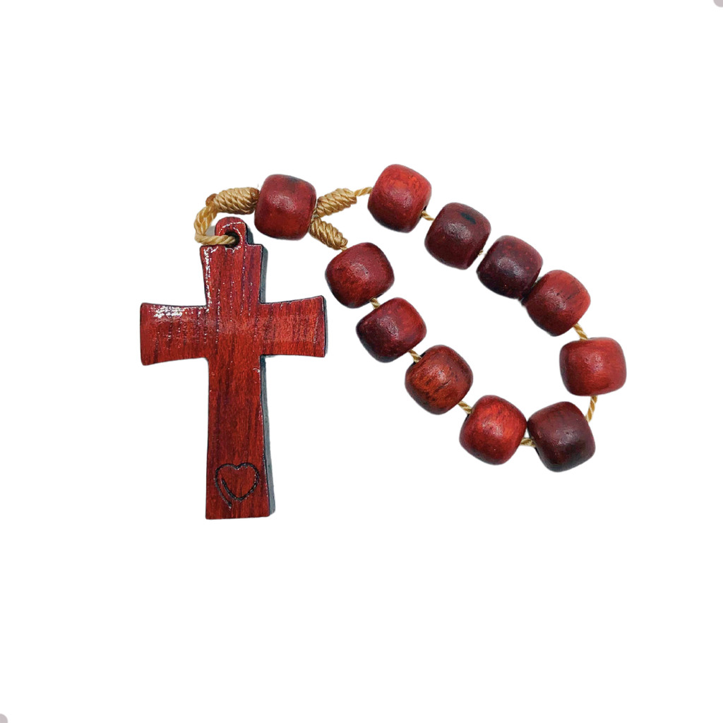 Mini Terço Dezena De Dedo Madeira Tercinho Bolso E Carteira