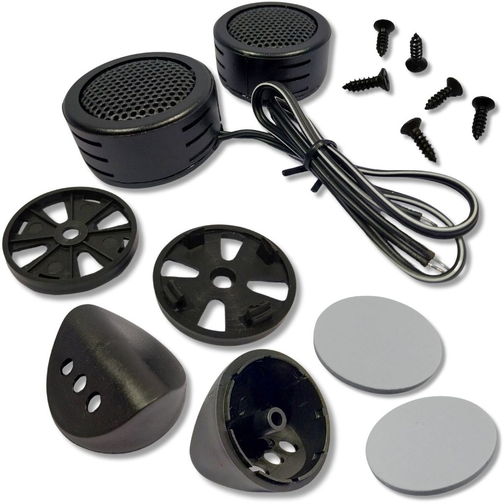 PAR MINI TWEETER DE ALTA FREQUENCIA 600W PAINEL PORTA COLUNA Mini Tweeters de alta frequência (sons mais agudos) este tweeter melhorara a performance do seu sistema de som automotivo, dando mais brilho a acústica interior. Acompanha suportes que facilitam instalação no painel, porta, coluna ou tampão do seu veículo. Seu tamanho reduzido e tecnologia surpreendem na diferença e experiência sonora! INFORMAÇÕES TÉCNICAS: Impedância 8 Ohms; Potência: 600 W p.m.p.o. / 160 wrms Crossover integrado Pode ser instalado em qualquer local 100db de puro som com somente 2,8v CONTEÚDO DA EMBALAGEM: 2 Mini Tweeters de Alta Frequencia 2 Molduras em Ângulo; 2 Molduras de Superfície; 2 Discos Auto Adesivos; 4 Parafusos para Fixação. NTV302