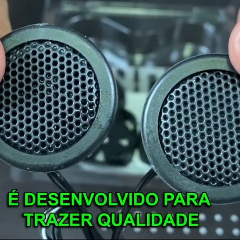Kit Mini Tweeter Universal 80w P Porta E Painel Este é um tweeter tradicional e compacto, desenvolvido em plástico e com engenharia de alta resistência. Além disso, eles também oferecem uma alta eficiência e possibilidade de ligação direta com qualquer alto-falante em um sistema de som. Deixe seu sistema de som muito eficiente com o Par de Mini Tweeter que foi feito para trazer mais qualidade e dar destaque às frequências mais altas. Com ele, você terá maior desempenho para curtir suas músicas. Especificações Técnicas: • Potência RMS : 80W • Potência Máxima PMPO : 600W • Impedância Nominal : 4 Ohms • Sensibilidade: 88 dB • Resposta de Frequência: 6Hz a 20Khz • Dimensões Aproximadas (DxP): 4,2 x 2,2 cm Conteúdo da Embalagem: • 02 Capacitor • 02 Mini Tweeters • 02 Molduras de Ângulo • 02 Molduras de Superfície Plana • 01 Kit de Fixação • Manual e Certificado de Garantia