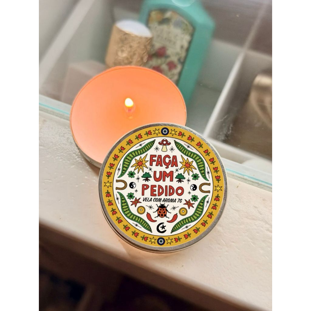 Mini Vela na lata de metal com estampa em DTF UV. Medidas: 5cm x 1cm7 GRAMAS, aroma de morango.