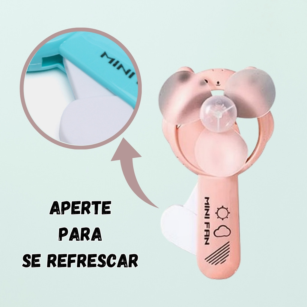 Mini ventilador portátil - Refresque-se onde estiver, a qualquer momento! Características gerais: - Medidas: 12cmx6,5cmx2,5cm - Material: Plástico - Não precisa de pilha ou bateria Ele foi projetado para funcionar de maneira manual, sem a necessidade de baterias ou pilhas, o que torna o uso mais econômico e sustentável. - Ao apertar uma parte específica, as hélices começam a girar, criando uma brisa refrescante instantânea. - É um acessório perfeito para crianças, jovens e até adultos que buscam um toque de charme no dia a dia. - Com um tamanho pequeno e leve, o ventilador pode ser facilmente transportado em bolsas, mochilas ou até no bolso. Ele é perfeito para usar em viagens, passeios ao ar livre, no transporte público ou até mesmo no trabalho ou escola, proporcionando uma brisa refrescante sempre que você precisar. - Esse mini ventilador portátil com design prático, ideal para quem deseja um refresco rápido, sem complicação e de forma ecológica, com um toque de fofura. - Uma ótima opção para lembrancinhas de festa. O que você está comprando: 1-Mini ventilador portátil