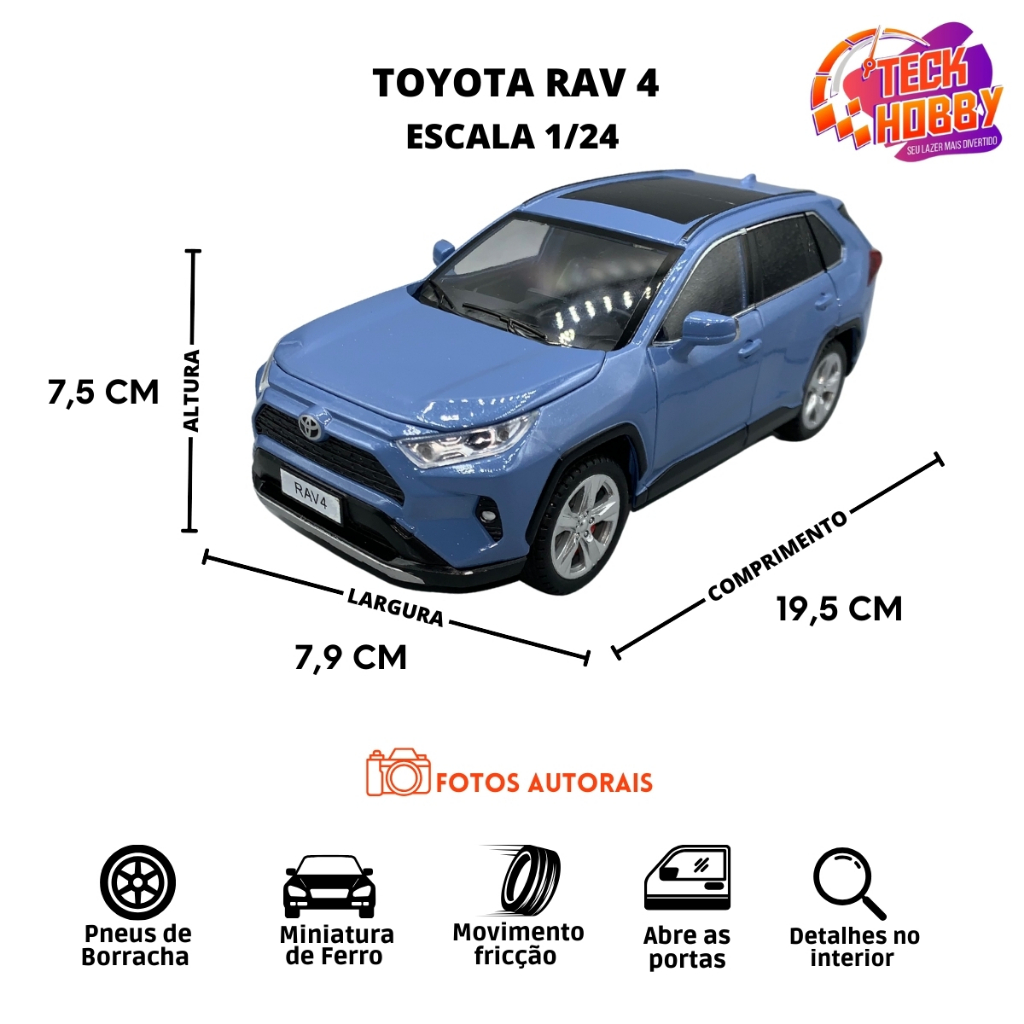 Miniatura Carro Toyota Rav 4 Acende Farol lanterna e Tem Som 1/24