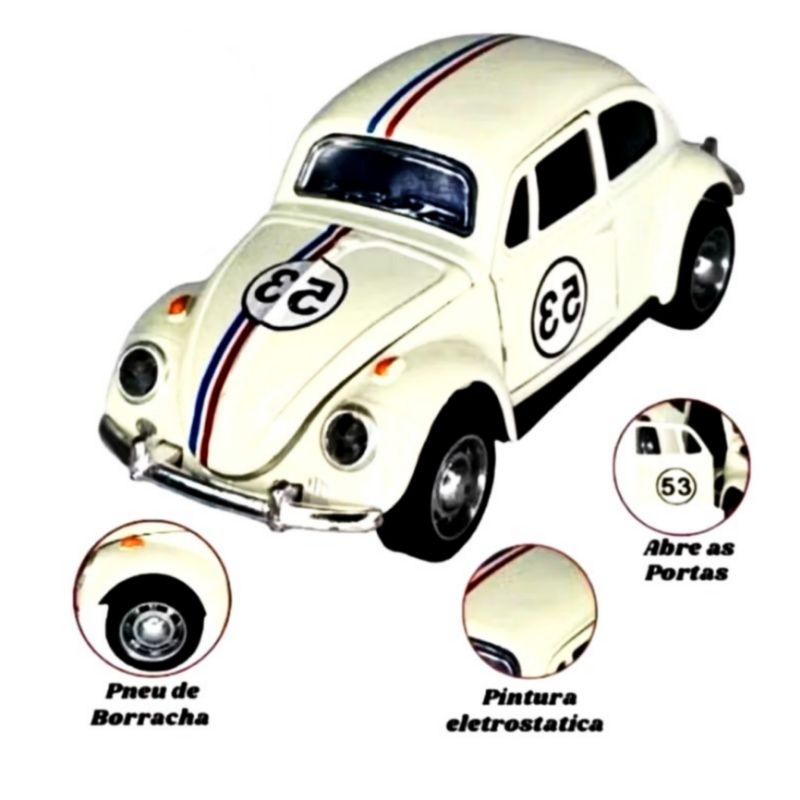--ENTREGA RÁPIDA-- --ENVIAMOS NO MESMO DIA-- >>Miniatura Volkswagen Fusca Herbie 53 e Cores variadas na autêntica escala 1/32 : cerca de 13 Centímetros<< >> Miniatura VW Kombi, Fusca Summer e Caminhonete C100 em autêntica escala 1/32; cerca de 13 Centímetros >>Chaveiro Volkswagen Fusca com fricção cores variadas na autêntica escala 1/64 : cerca de 4 centímetros<< Perfeito para: Colecionadores e Entusiastas Reviva a magia do clássico Herbie com nossa miniatura em escala 1/32! POR QUE VOCÊ VAI AMAR ESSA MINIATURA: >> TODAS AS VARIAÇÕES : •Autêntica Escala 1/32, cerca de 13 cm, essa réplica é fiel ao original, perfeita para exibir ou adicionar à sua coleção. • Pneus de Borracha: Detalhes realistas que trazem uma sensação autêntica. • Rodas Originais de Época: Um toque nostálgico que agrada qualquer entusiasta de carros clássicos. • Movimento por Fricção: Divirta-se vendo Herbie em ação. • Portas e Capô dianteiro Abríveis: Detalhes funcionais que encantam pela precisão. • Construção em Metal com Detalhes em Plástico: Combinação de robustez e elegância, garantindo durabilidade e um acabamento de alta qualidade. • Rico em Detalhes: Cada aspecto foi cuidadosamente reproduzido para capturar a essência do Herbie. PERFEITO PARA: • Colecionadores: Um item indispensável para qualquer coleção de miniaturas. • Presentear Alguém Especial: Um presente que vai encantar amantes de carros e de nostalgia. Adicione um toque clássico à sua coleção ou surpreenda alguém especial com a miniatura do Volkswagen Fusca Herbie 53! Garanta o seu agora e leve para casa um pedaço da história automotiva! --ENTREGA RÁPIDA-- --ENVIAMOS NO MESMO DIA--