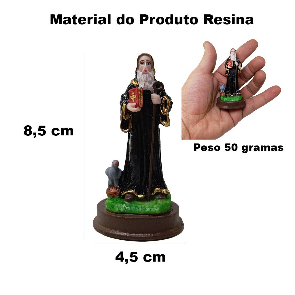 Miniatura de Imagem de São Bento em Resina Pequena para Decoração Religiosa