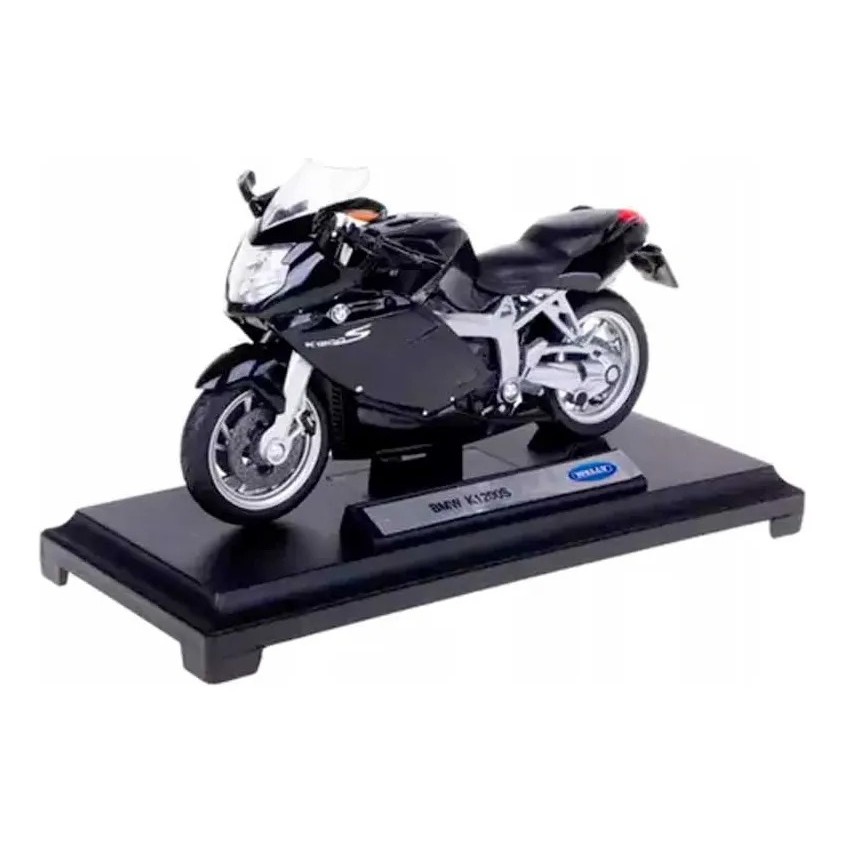 Miniatura Moto BMW K1200S Cor preta Com uma escala de 1:18 ideal para quem aprecia o design esportivo da famosa marca BMW.