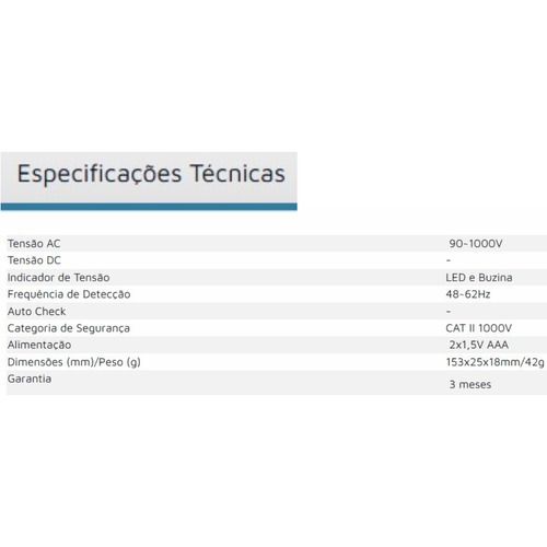 | Minipa Ez Alert I Caneta Detector de Fase e Tensão Com Lanterna este produto | R$ 59,90 | — | 5.0/5 | — |
