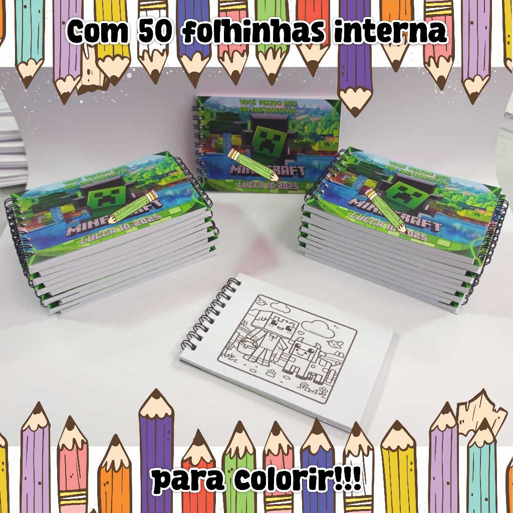 Mini Caderninhos de colorir perfeitos para Brindes e Eventos 🎨✨ Produzidos com capa colorida, encadernação WIRE-O e páginas internas para colorir, esses minis caderninhos encantam crianças e adultos. São práticos, leves e ideais para: Festas Infantis Escolas Ações promocionais Aniversários Eventos Corporativos Lembrancinhas Personalizadas. Descrição dos Minis Caderninhos: Capa: Papel 240g / 250g Miolo: sulfite 75g - 50 páginas com desenhos variados Medida: 13,5 x 9 cm Além de divertidos, estimulam a criatividade, coordenação motora e imaginação, tornando-se um brinde útil, educativo e memorável.