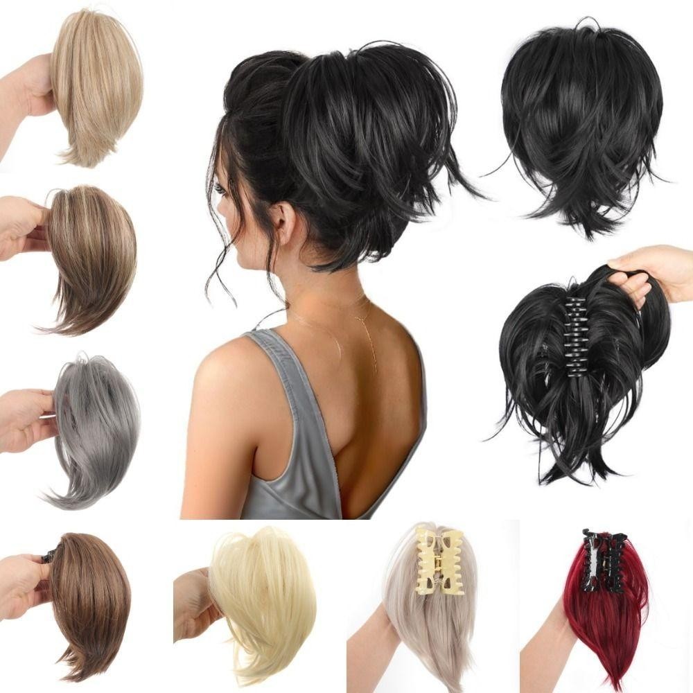 MIQUEL Rabo De Cavalo Reto Bagunçado , Clipe De Garra Updo Sintético Em Pães De Cabelo , Pedaços Falsos Naturais Curtos
