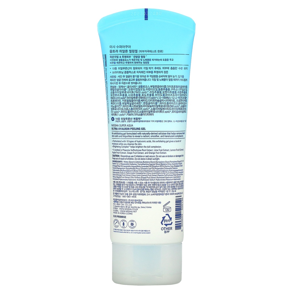 missha super aqua ultra hyalon peeling gel 100ml