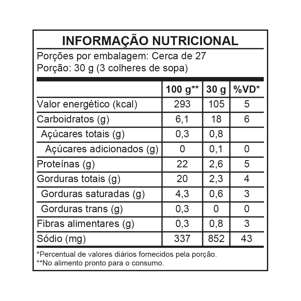 Passou, fritou! A Mistura Completa para Milanesa Ajinomoto® prepara milanesas e empanados em uma só etapa, sem precisar passar no ovo e temperar. Prática, a Mistura Completa para Milanesa Ajinomoto® confere uma casquinha de cor característica, crocante e aderente às suas receitas, além de permitir o toque do chefe. Padronize suas preparações e ganhe agilidade no dia a dia! Utilização: Recomendação de uso: Produto pronto para uso, já temperado. Não é necessário passar no ovo. 10 g de produto empanam 100 g de carne (ex: bife de patinho). Condições de armazenamento: Embalagem fechada: manter em local seco e arejado. Após aberto: manter embalagem bem fechada, longe da umidade.