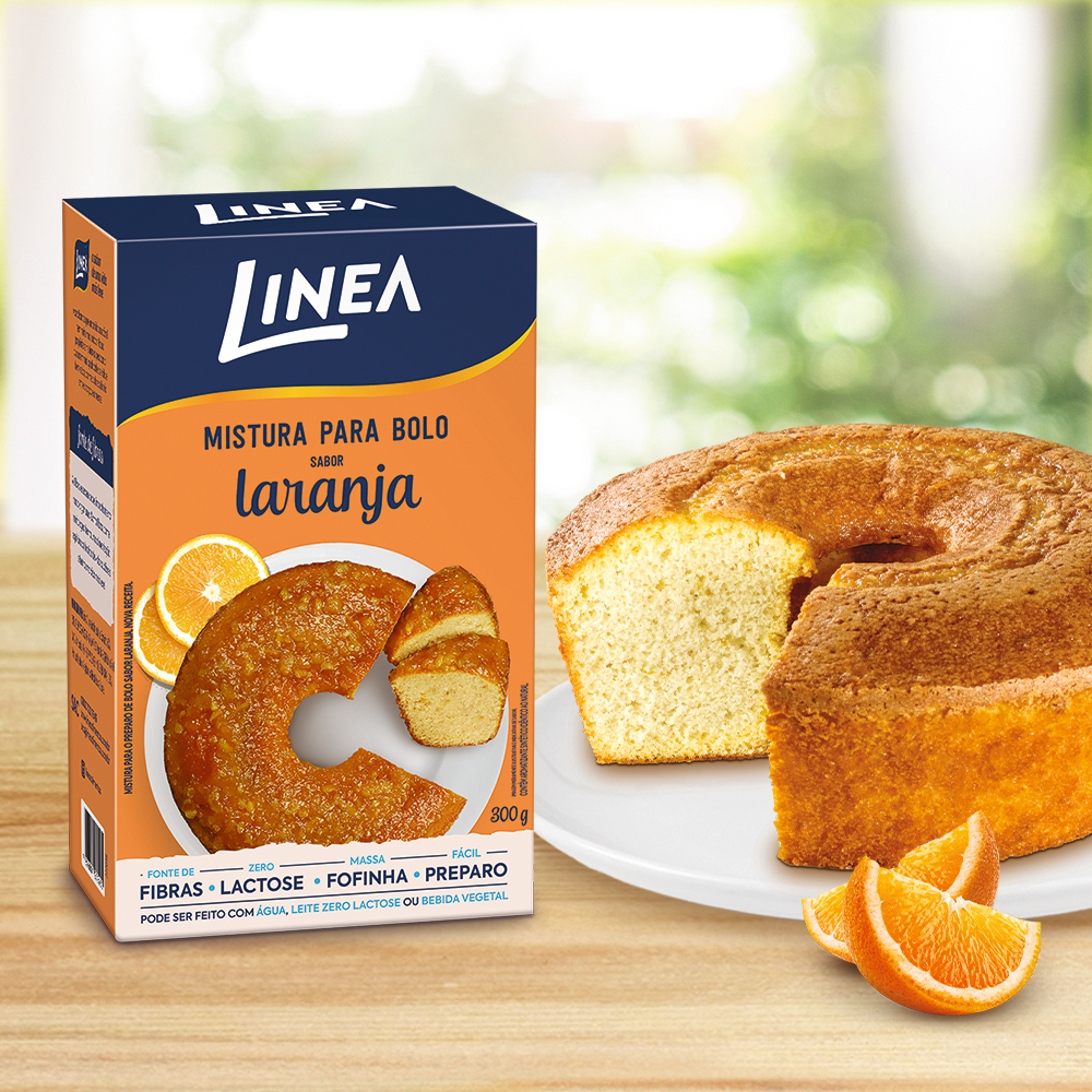 Linea Mistura para Bolo Sabor Laranja é macia, saborosa e fonte de fibras. Sem adição de açúcares, é adoçado com sucralose, o adoçante derivado da cana de açúcar. De fácil preparo, basta adicionar 2 ovos e água ou leite, sem precisar adicionar margarina ou manteira. Por ser zero lactose, os intolerantes a lactose podem preparar com água, leite zero lactose ou bebida vegetal. 1 KIT COMPOSTO POR: - 2 Misturas Para Bolo Sabor Laranja Linea 300g INGREDIENTES farinha de trigo enriquecida com ferro e ácido fólico, amido de milho, gordura vegetal de palma, edulcorantes: maltitol e sucralose, espessantes: polidextrose e goma xantana, emulsificante mono e diglicerídeos de ácidos graxos, antiumectante fosfato tricálcico, fermentos químicos: fosfato monocálcio, difosfato de cálcio e bicarbonato de sódio e aromatizante. CONTÉM DERIVADOS DE TRIGO E LEITE. PODE CONTER CENTEIO, CEVADA, AVEIA E SOJA. CONTÉM GLÚTEN.