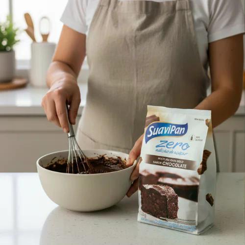 A Massa de Bolo Sabor Chocolate 300g SuaviPan é perfeita para quem busca praticidade sem abrir mão do sabor. Com preparo rápido e fácil, você garante um bolo fofinho e delicioso para compartilhar em família ou servir em qualquer ocasião especial. Produzida com ingredientes de qualidade, traz o irresistível sabor do chocolate para a sua mesa, deixando qualquer momento mais gostoso. Por que Comprar: Sabor intenso de chocolate. Prática e fácil de preparar. Rendimento ideal para toda a família. Qualidade e tradição da SuaviPan. Recomendações: Armazene a Massa de Bolo Sabor Chocolate SuaviPan em local fresco e seco, longe da luz solar e de produtos de limpeza. Ingredientes: Farinha de trigo enriquecida com ferro e ácido fólico, cacau em pó, gordura vegetal, fermentos químicos: bicarbonato de sódio e pirofosfato ácido de sódio, emulsificantes: mono e diglicerídeos de ácidos graxos e estearoil lactilato de sódio, aromatizante, sal. ALÉRGICOS: Contém trigo e derivados. Pode conter ovos, soja, centeio, cevada, aveia e triticale. Contém glúten. Dicas de Consumo: Prepare de forma prática e rápida! A Massa de Bolo SuaviPan pode ser feita apenas com água e ovos, garantindo um bolo fofinho e saboroso em poucos minutos. Para variar, experimente adicionar coberturas, frutas ou recheios e deixe sua receita ainda mais especial. Prazo de validade: Todos os nossos produtos são produzidos semanalmente em pequenos lotes! Fique tranquilo que você receberá sua compra com pelo menos 4 meses de validade!