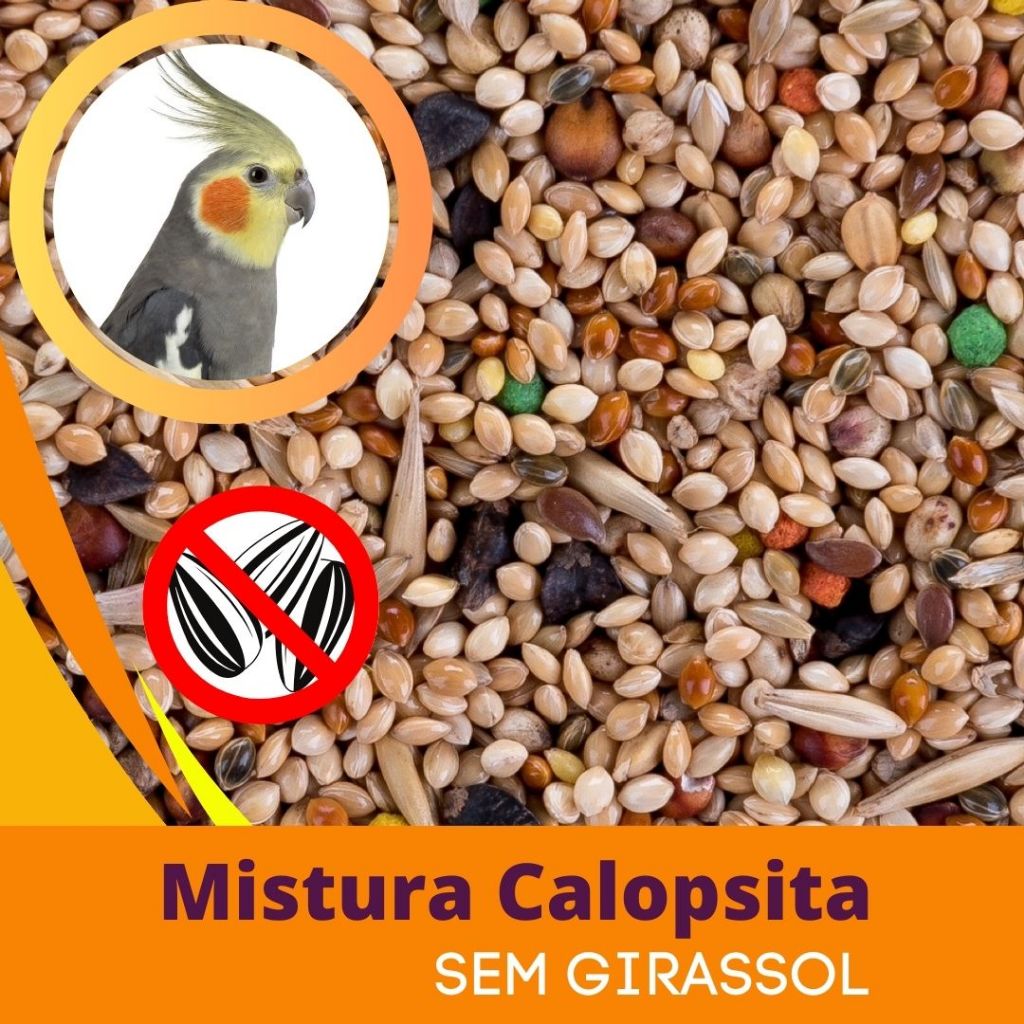 Mistura especialmente desenvolvida para Calopsitas e outros Psitacídeos sem a adição de Girassol._x000d_ _x000d_ _x000d_ Composição:Painço nacional, painço vermelho, painço verde, painço branco importado, alpiste, aveia com casca, sorgo branco, sorgo vermelho, linhaça marrom, trigo sarraceno, senha, arroz bolinha e grãos extrusados._x000d_ _x000d_ Sementes e misturas de produção própria contam com tripla limpeza: Nossas sementes são limpas por processo de ventilação e peneiramento, sistema que força o desprendimento das partículas de poeira da casca dos grãos, assim como outras impurezas típicas da colheita dos grãos. Não adicionamos nenhum tipo de produto conservante as nossas sementes. Armazene sempre em local seco, fresco e arejado ao abrigo da luz solar. Utilize sempre a embalagem original. Após o uso feche com a ajuda de arame ou cordão para evitar o ataque de insetos e carunchos.Fornecer o alimento em recipiente apropriado e limpo. Deixar sempre água fresca a disposição do pássaro.