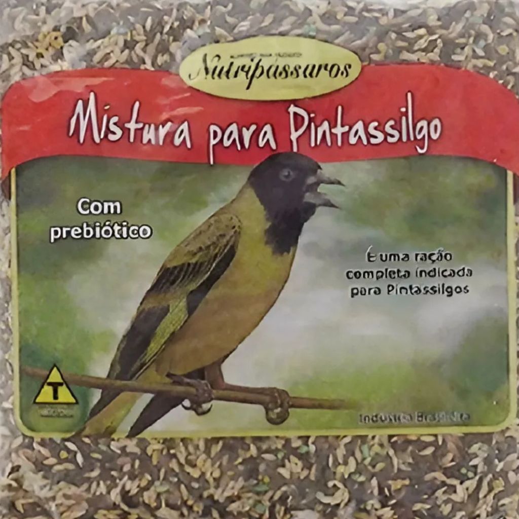 OLÁ SOMOS DA AVICULTURA MENDES COM MAIS DE 20 ANOS NO MUNDO PET SEMPRE BUSCANDO O QUE TEM DE MELHOR PARA SEU ANIMALZINHO DE ESTIMAÇÃO.. Apresentamos para vocês a ração: Mistura Alimento Semente Para Pintassilgo Nutripássaros 500g Rações Nutripassaros contribuem para aves saudáveis e predispostas a cantar! A Mistura para Pintassilgo é uma ração completa com prebiótico, indicada para os pássaros Pintassilgos. A escolha correta da ração promove a saúde e estimula o canto e a reprodução. Ingredientes: Fubá de milho, Farelo de soja, Levedura seca de cervejaria, Farelo de trigo, Alpiste, Niger, Semente de linhaça, Milheto, Colza, Ovo desidratado, Fosfato bicálcico, Carbonato de calcio, Cloreto de sódio (sal comum), Corante amarelo tartrazina, Corante vermelho bordeaux, Corante verde, Oleo de soja refinado, Mannan-oligossa-carídeos, Ácido Propiônico, Acido Sórbico, Aditivo flavorizante, Ácido fólico, Ácido pantotênico, Antioxidante (BHT), Biotina, Cloreto de colina, Cloreto de lisina, lodato de potássio, Metionina, Niacina, f Selenito de sódio, Sulfato de cobalto, Sulfato de cobre, Sulfato de ferfo, Sulfato de manganês, Vitamina A. Vitamina B1, Vitamina B2, Vitamina B6, Vitamina B12, Vitamina C, Vitamina D3, Vitamina E, Vitamina K3, Óxido de zinco Espécies doadoras de gene: Milho - Bacillus thuringiensis, Streptomyces viridochro-mogenes; Milho/Soja - Agrobacterium tumefaciens.