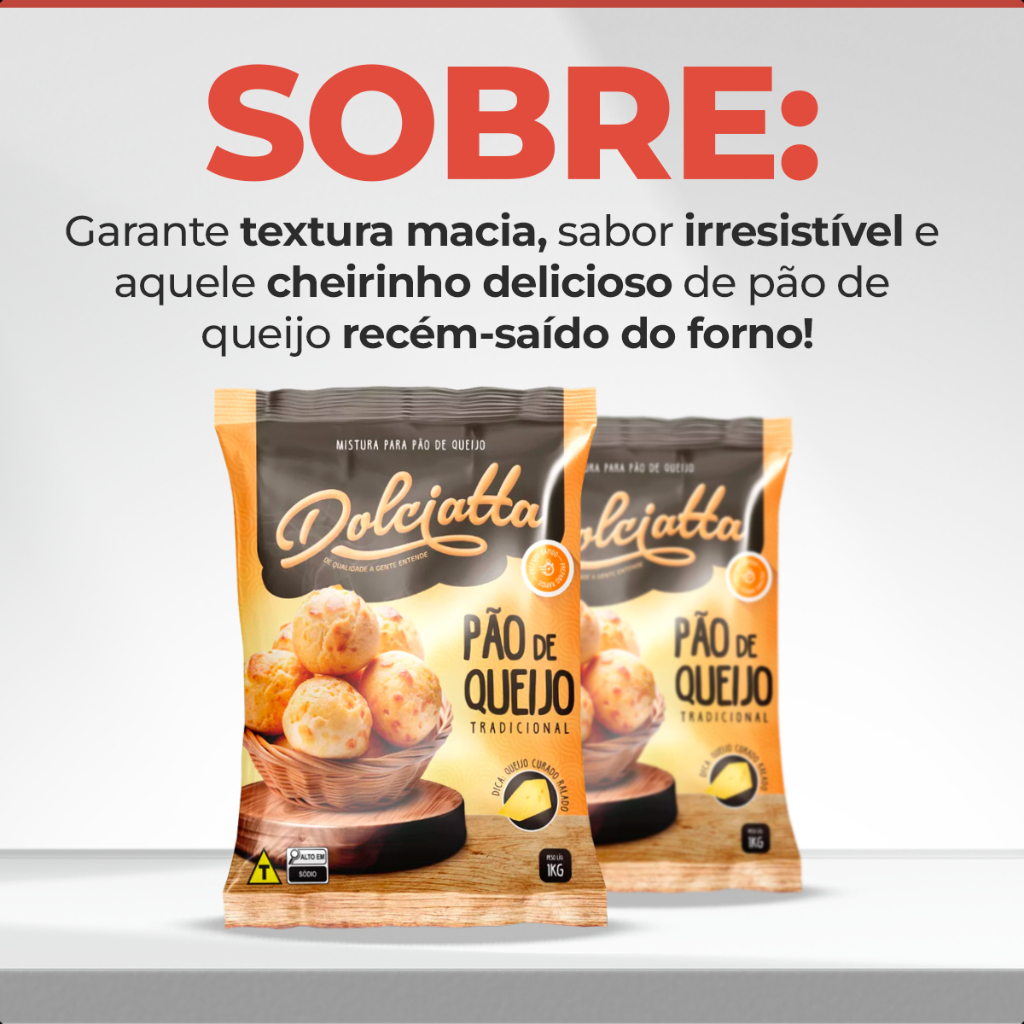 Prepare o autêntico pão de queijo mineiro com praticidade e qualidade usando a Mistura em Pó para Pão de Queijo Premium Dolciatta 1kg. Desenvolvida para garantir textura macia, sabor irresistível e aquele cheirinho delicioso de pão de queijo recém-saído do forno, essa mistura é perfeita para uso doméstico e comercial. Benefícios - Receita premium, com ingredientes selecionados; - Fácil e rápida de preparar, sem necessidade de experiência culinária; - Produto versátil, ideal para uso doméstico ou comercial. Informações técnicas: Marca: Dolciatta Peso: 1Kg Ingredientes: Polvilho, queijo em pó, gordura vegetal, sal e aromatizantes. Rendimento: 73 unidades de 30g cada Para preparar, basta adicionar 1kg de pré mistura, 400g de ovo inteiro, 400g de água e 400g de queijo, mexer até obter uma massa homogênea, moldar em bolinhas e assar em forno pré-aquecido a 180ºC por aproximadamente 25 a 35 minutos Transforme qualquer momento em uma experiência deliciosa com o pão de queijo Dolciatta! A Allpan oferece uma garantia de 90 dias contra defeitos de fabricação, proporcionando segurança e confiança em sua compra.