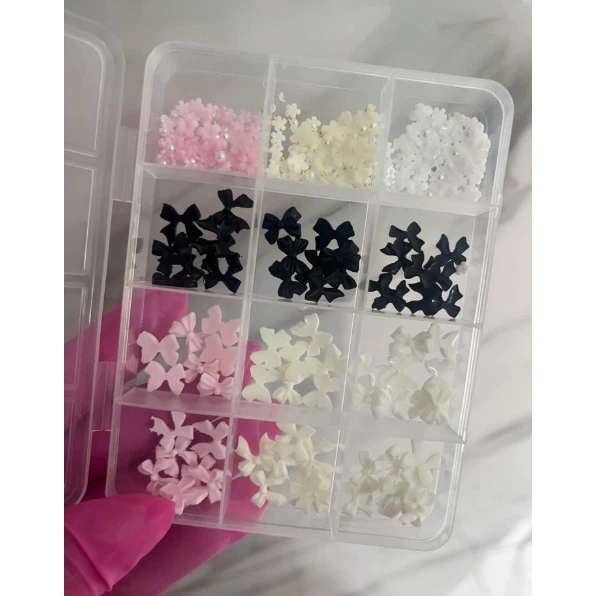 Misturada 3D arco resina unha encantos de arte, Bowknot florzinha Flatback Nail Gems DIY Manicure Decorações