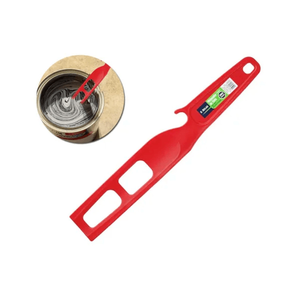 Descrição do produto: Misturador plástico de tinta manual, confeccionado em formato específico que beneficia a mistura dos mais variados tipos de tintas. Indicado para misturar tintas e vernizes em galões de 3,6 litros e lata de 900ml. Prático e eficiente em pinturas que necessitam de uma boa homogeneização. Indicação de uso: Indicado para misturar tintas e vernizes manualmente. MISTURADOR DE TINTAS PLÁSTICO ATLAS AT176/3