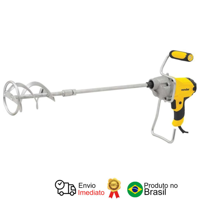 Misturador elétrico de argamassa, MAV 850, 127 V~, VONDER Possui gatilho eletrônico e cabo com revestimento emborrachado. Indicado para misturar argamassa, tinta, gesso, cola, entre outros. Especificações: Modelo: MAV 850 Tensão (V~): 127 V~ Potência: 850 W Rotações por minuto (rpm): 0 - 500/min Rosca da pá: M14 x 2,0 mm Comprimento total da pá (pá + extensão): 590 mm Diâmetro da haste da pá: 14 mm Diâmetro da pá: 120 mm Volume máximo da mistura por operação: 80 litros Aceleração transmitida nas mãos - braços do operador - ah: 2,47 m/s² Incerteza da aceleração transmitida nas mãos - braços do operador - k: 1,5 m/s² Massa aproximada (peso) (kg): 4,0 kg Conteúdo da Embalagem: 1 Misturador. Acompanha: 1 punho suporte, 1 extensão da pá, 1 pá para misturador e 2 chaves fixas.