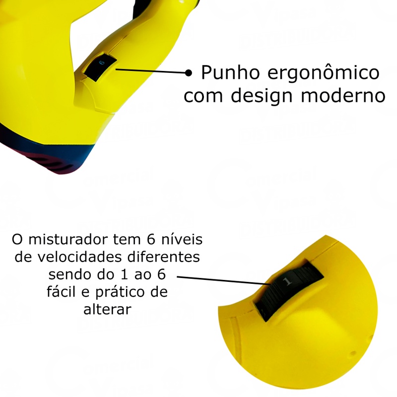 COMERCIAL VIPASA DISTRIBUIDORA. Misturador Elétrico Para Tintas E Argamassas Vários Modelos Obras Construção Cívil Profissional DESCRIÇÃO MISTURADOR DE TINTA DA MARCA TITANIUM 110V E 220V TITANIUM - 1600W ( 110V E 220V ) Misturador Elétrico Para Tintas E Argamassas 1600W O Misturador Elétrico é indicado para misturar, dissolver, agitar ou homogeneizar qualquer tipo de solução líquida, com ou sem presença de sólidos (gesso, argamassa, materiais impermeáveis, tinta cola, rejunte, impermeabilizante), possibilitando o controle da velocidade conforme o serviço a ser executado. Características do Produto: • Potência: 1.600 Watts • Tensão: 110V ou 220V • Frequência: 50 - 60Hz • Diâmetro da pá misturadora: 120mm • Rotação: 0 a 380 rpm/min / 0-660 rpm/min • Comprimento da haste: 59 Cm DESCRIÇÃO MISTURADOR DE TINTA DA MARCA - MENEGOTTI 110V E 220V MENEGOTTI - 1200W ( 110V E 220V ) Produto original, com nota fiscal, garantia e envio imediato. O Misturador Elétrico Menegotti com a potência de 1200W (127V/60Hz e 220V/60Hz monofásico) é indicado para operação em que é necessário misturar, dissolver, agitar ou homogeneizar qualquer tipo de solução líquida, com ou sem a presença de sólidos (gesso, argamassa, materiais impermeáveis, tinta, cola, rejunte, impermeabilizante), possibilitando o controle da velocidade conforme o serviço a ser executado. Modelo: MEL 1200; Potência: 1270W; Tensão / Frequência: 127V ou 220V / 60Hz (escolha a voltagem correta); Isolação/ Classe de proteção: Dupla Isolação/ 2; Dimensões: C x L x A: 430 x 680 x 420mm; Rotação: 0 - 650 rpm; Diâmetro da pá misturadora: 120mm. Construtores e pedreiros Profissionais da construção civil Pintores Empresas de reforma e construção DIYers (faça você mesmo) que realizam projetos em casa Empreiteiras Arquitetos e designers de interiores Manutenção predial Empresas de pintura industrial Lojas de materiais de construção Misturador de tinta e argamassa Mixer de construção Agitador de argamassa elétrico Misturador de tintas profissional Ferramenta para preparo de argamassa Equipamento para construção civil Misturador de massa corrida Agitador de tintas Máquina para misturar argamassa Mixer para obras Misturador de tinta elétrico eficiente Mixer construção civil qualidade Ferramenta para preparo fácil de argamassa Equipamento construção civil prático Misturador de massa corrida profissional Misturador de tinta elétrico Agitador de argamassa de alta qualidade Equipamento profissional para construção Misturador de tintas eficiente Ferramenta para preparo de argamassa fácil de usar Mixer construção civil durável Máquina para misturar argamassa resistente Agitador de tintas de última geração Misturador de massa corrida potente Mixer para obras de alto desempenho Eficiente Durável Potente Prático Profissional Resistente Inovador Versátil Confiável Fácil de usar . Benefícios do Produto: Economiza tempo no preparo de tintas e argamassas Aumenta a eficiência do trabalho Reduz esforço físico Proporciona mistura homogênea Facilita o trabalho em espaços confinados Versatilidade para diferentes tipos de misturas Durabilidade para uso contínuo Design ergonômico para conforto do usuário Contribui para acabamentos mais uniformes Ideal para projetos de construção e reforma Equipamento Dispositivo Instrumento Ferramenta Acessório 8. Principais Soluções Oferecidas: Agiliza e simplifica o preparo de tintas e argamassas Melhora a qualidade e consistência das misturas Reduz a fadiga e o esforço manual durante o trabalho COMERCIAL VIPASA DISTRIBUIDORA.
